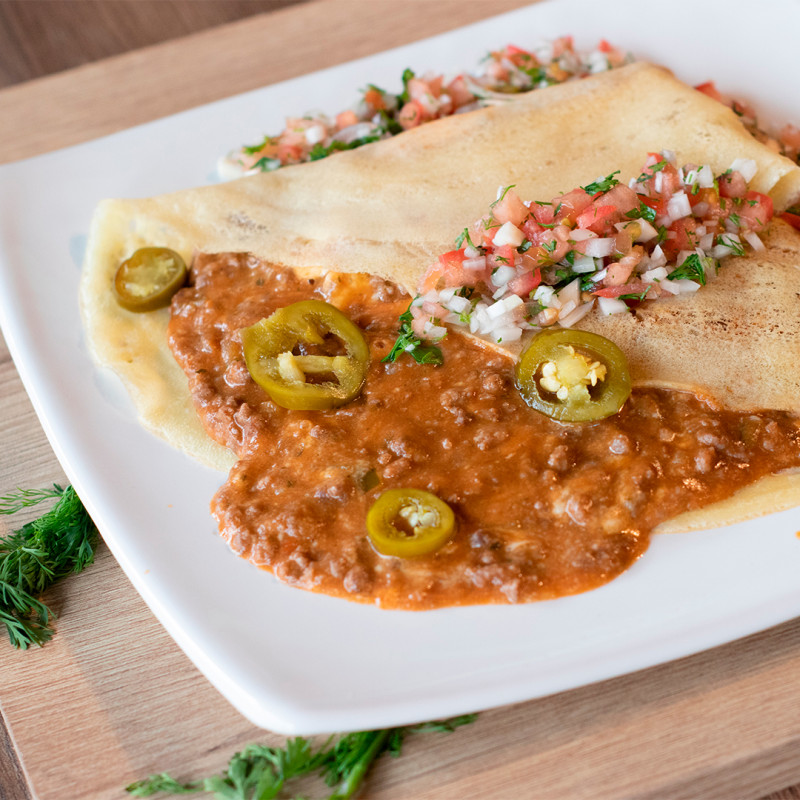 Sala boloñesa, jalapeño, pico de gallo, queso y carne molida