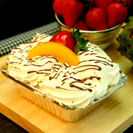 Merengón con dulce de guanábana, fresa picada, cubierto con crema de leche.